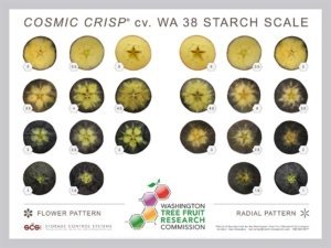 The shipping date for this year’s crop is set at Nov. 25. That’s because WA 38 takes about six weeks, on average, in storage to reach its starch clearance targets for optimum flavor. The recommendation is to market fruit from mature orchards in the first part of the season, since it matures more consistently.
