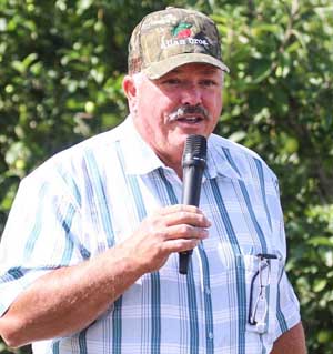 Jim Doornink speaks about bud count at the International Fruit Tree Association tour in Eastern Washington, July 2015.