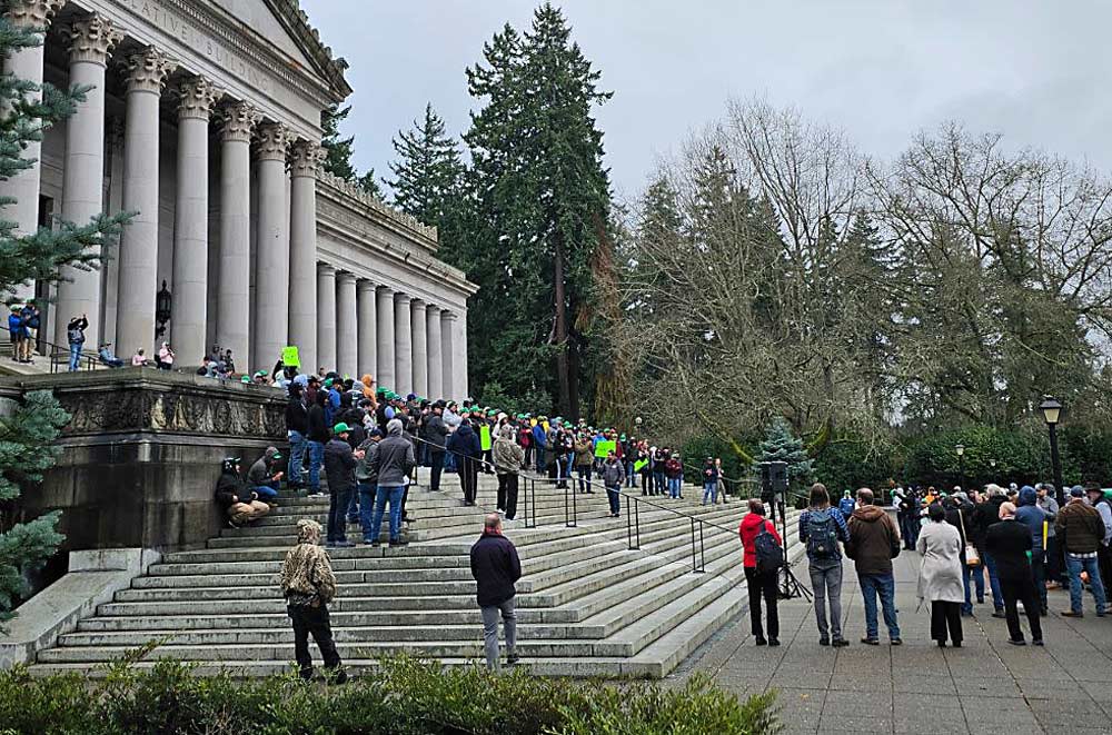 An estimated 200 people gathered at the state Capitol in Olympia on Jan. 25 in support of a seasonal exemption for Washington’s 40-hour overtime threshold.