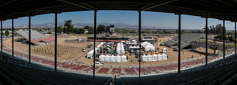 Vendors sprawl throughout the rodeo grounds on the opening day of the FIRA USA agricultural robotics conference Sept. 19 at the Salinas Sports Complex in Salinas, California.