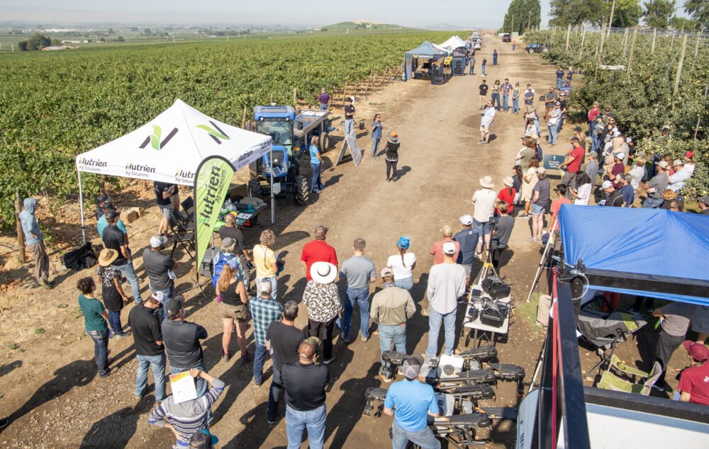 More than 100 people watched driverless tractors and smart sprayers at the 2023 Smart Orchard field day, which this year concentrated on crop load management with precision irrigation, nutrient application and spraying.