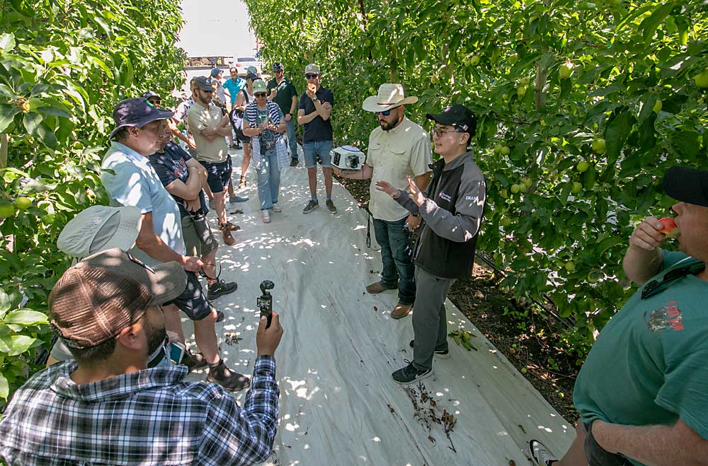 At an Allan Bros. ranch in the Yakima Valley, process improvement manager Matt Miles hosted the group to talk about forays into precision crop load management and how vision technologies are developing tools to help.